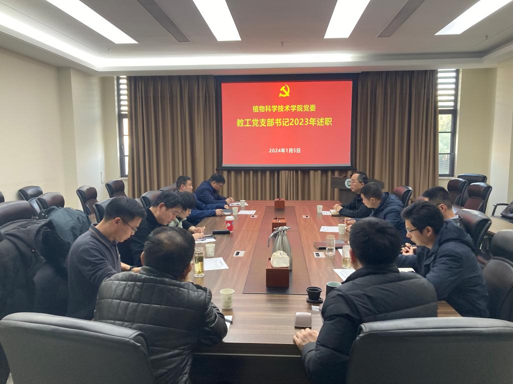 遗传教研室教工党支部易斌围绕支部样板建设的建设思路、举措、成效等方面进行报告。各支部也分别围绕落实主题教育学习,夯实理论武装;以立德树人为根本,提高教育教学育人质量;围绕科技强国目标,开展有组织的科研;聚焦农业强国建设,开展社会服务助力乡村振兴;发挥支部组织功能,关心师生生活与健康;强化支部政治功能,守牢师德师风底线等方面进行述职交流。
