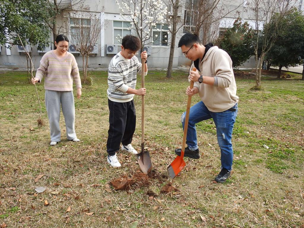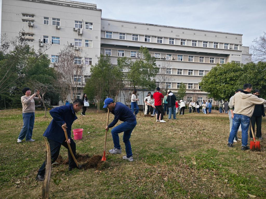 植树过程中,师生们干劲十足,大家遵循“一挖二垫三提四埋五踩”的植树技巧,一起挖坑整地、扶苗培土、提水浇灌,肆意挥洒汗水,以实际行动践行“绿水青山就是金山银山”的发展理念,以“党建红”引领“生态绿”,营造了“人人爱绿植绿护绿”的良好氛围。