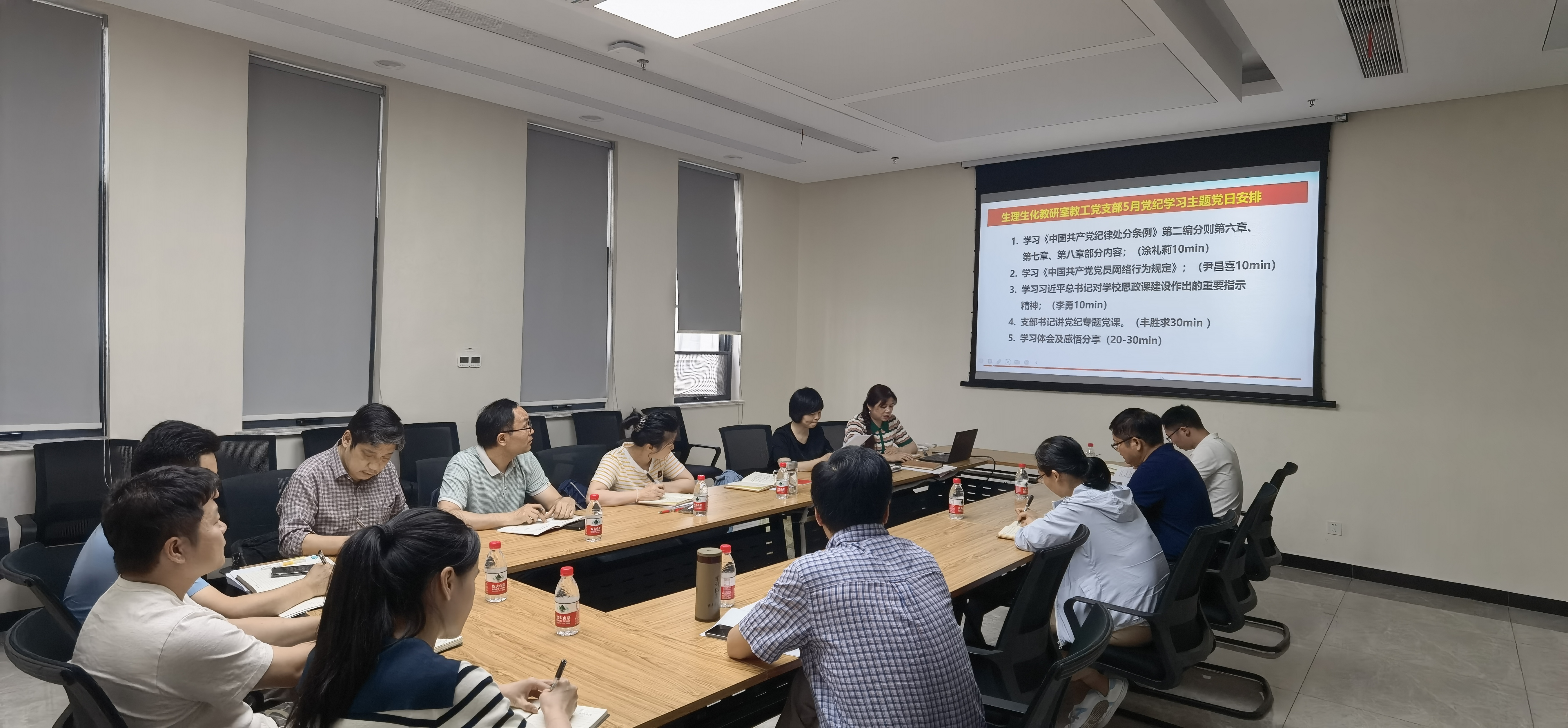 5月16日下午,生理生化教研室教工党支部在三综C302开展党纪教育专题学习。校巡察组袁有亮同志、学院党委副书记孙超同志列席了会议,会议由支部书记丰胜求主持。