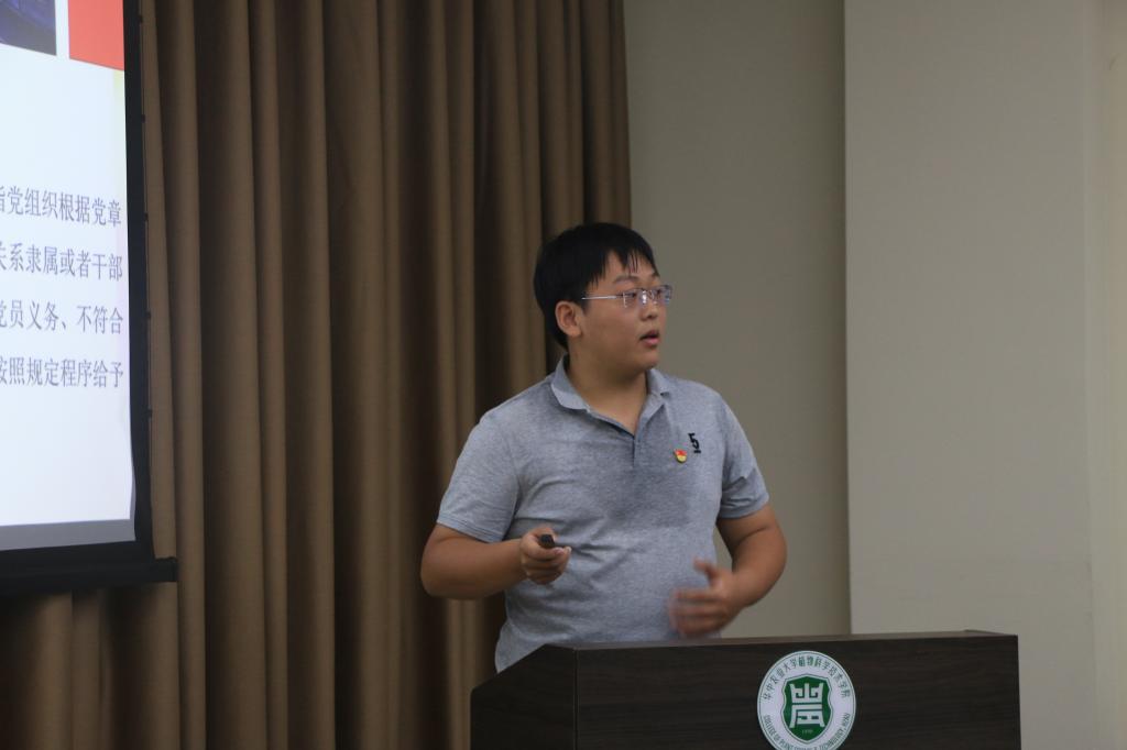 本科生农学专业第二党支部副书记陈广桓解读了《中国共产党不合格党员组织处置办法》。他谈到提高党员标准的重要性以及加强党员教育管理的必要性,呼吁支部把好入党关、强化培养教育,为保持党员队伍的先进性和纯洁性提供有力保障。
