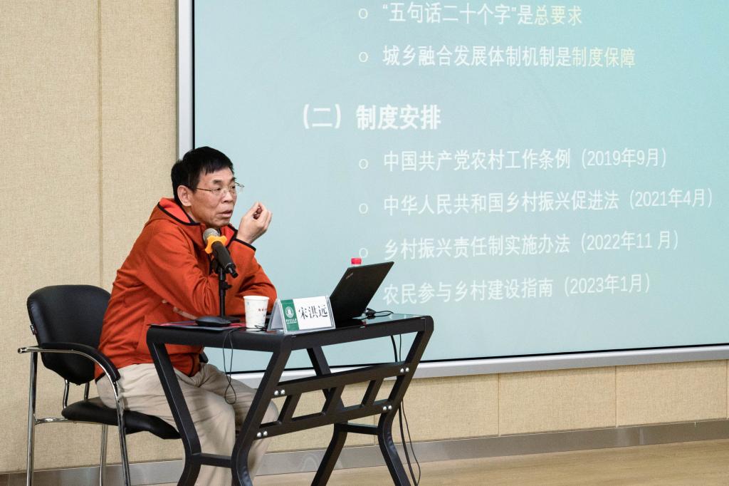 宋洪远从“乡村振兴战略要点和制度安排、新时代新阶段新部署新要求、党的二十大的新部署、习近平总书记的新论述、中央一号文件的新举措、深入研究的重大课题”等六个方面进行解读。